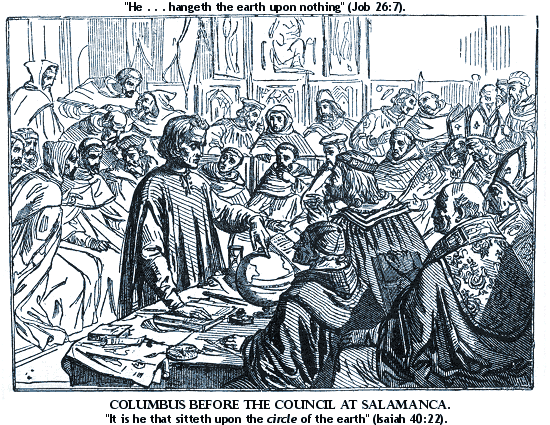 characterizes all true men whose convictions are strong and whose faith is steady, is meeting the objections of a number of learned professors of the sciences, dignitaries of the Romish Church, and learned friars, and defending the theory of the rotundity of the earth. An obscure navigator, strong in his belief, scouted by the illiterate, seeks in the Dominican convent in Salamanca, the great seat of learning in Spain, the sympathy and co-operation of the most erudite assembly his country can muster. Does he gain either sympathy or help? History answers, No. In the first place, anything new, however true, was stigmatized as heresy in those Inquisition times, and Columbus might well fear the consequences of indulging any thought that